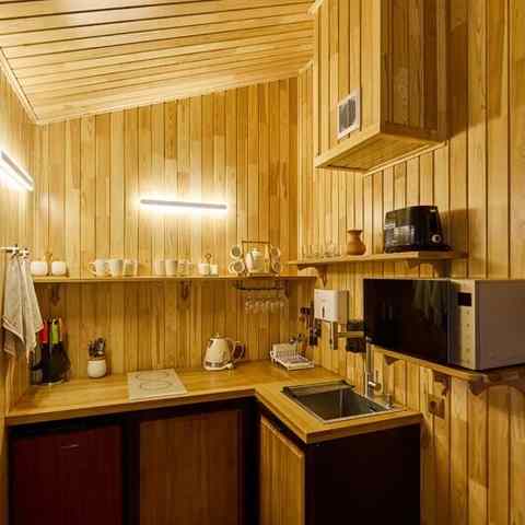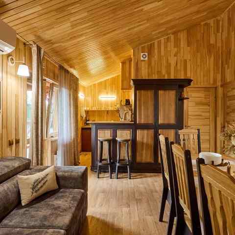 Каждый домик рассчитан на проживание 6–7 человек и включает: